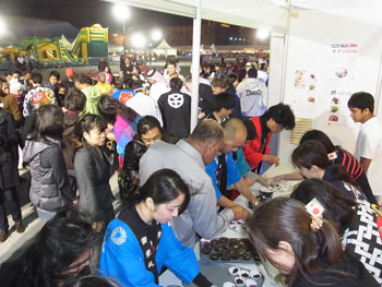 The 3rd Doha food festival was held by the Qatar Tourism Authority at the outside of the area of the exhibition centre.This year's theme is ”Taste and Fun”and more than 70 restaurants and hotels exhibited their stands. To celebrate the 40th anniversary of diplomatic relations, the Embassy's stand was set up and carried out Mochi-making performance in full collaboration with Taisei Cooperation and Takenaka Cooperation. The Embassy also served Japanese sweet jelly and Maki-sushi, at the same time Midori made sushi making performance which was welcomed by the full crowds.