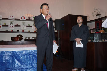| Ambassador Shingo Tsuda delivering the opening remarks | Soba(Japanese Noodle), Rice ball and Apples from Aomori |