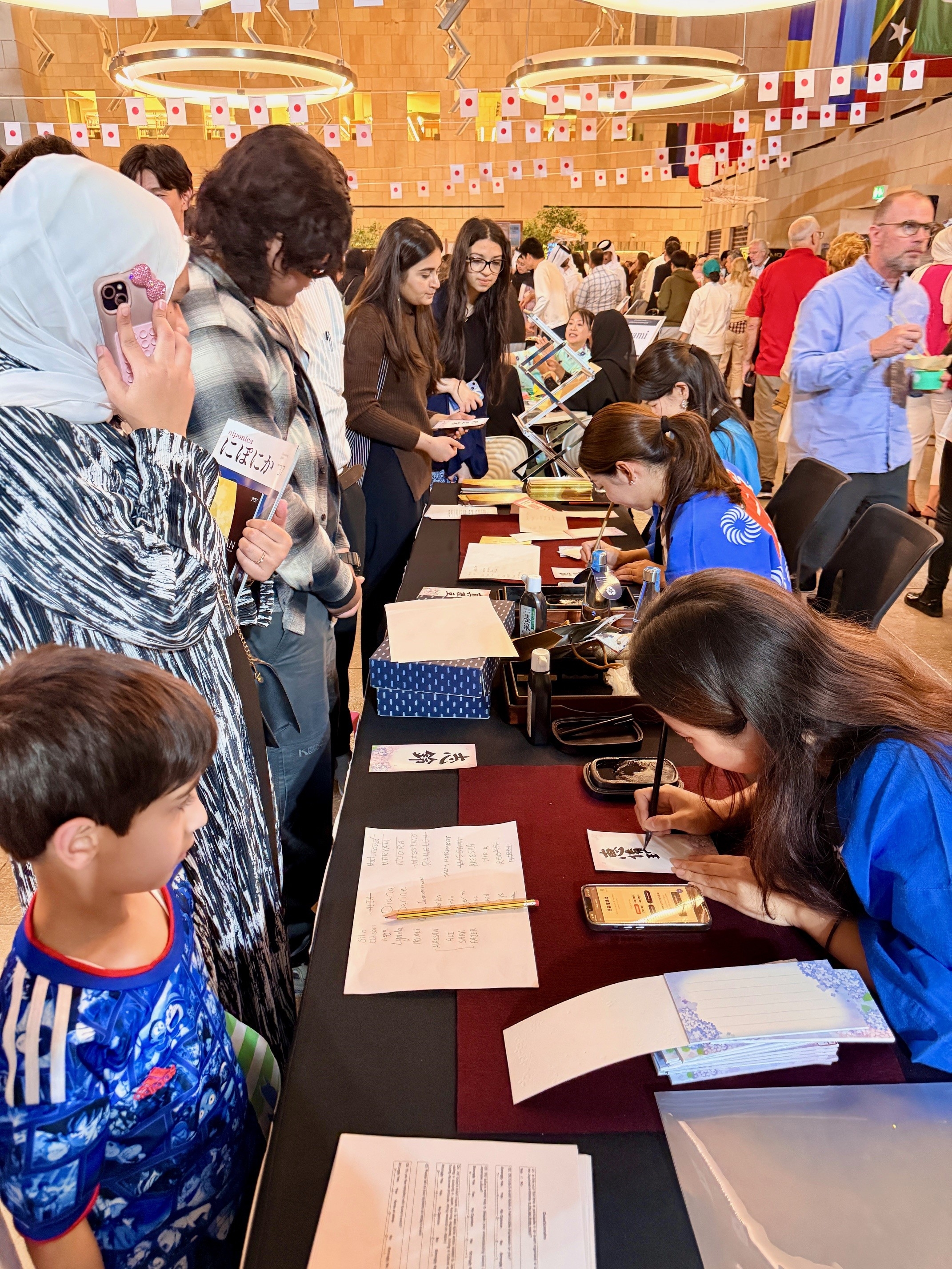 The following event introducing Japanese culture, featured performances such as a Japanese drumming performance by the Doha Japanese School, a kendo demonstration by the Doha Kendo Club, a tea ceremony demonstration, a performance of Japanese pop songs on Arabic Qanun, and a Japan trivia. It also featured a wide range of booths, including a kimono dressing and gold folding screen photo corner, calligraphy, yo-yo fishing, origami, kendama and top spinning, which were well received. The event concluded with a Bon Odori dance, which brought the entire venue together in great excitement. It was a meaningful event that deepened many people's understanding and interest in the profound depth of Japanese culture, contributing to the promotion of intercultural exchange.